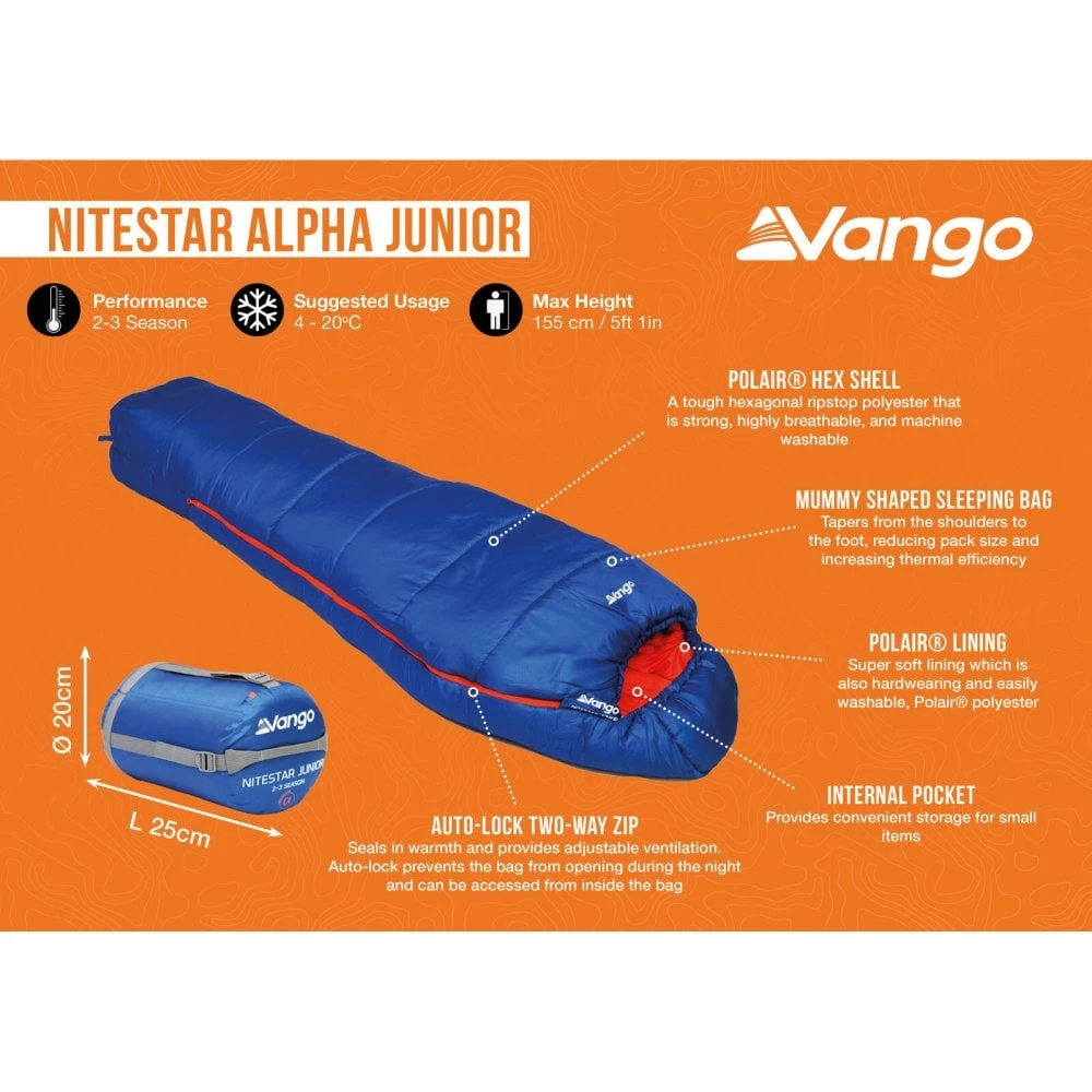 The ideal Junior sleeping bag, the Nitestar Alpha is excellent for