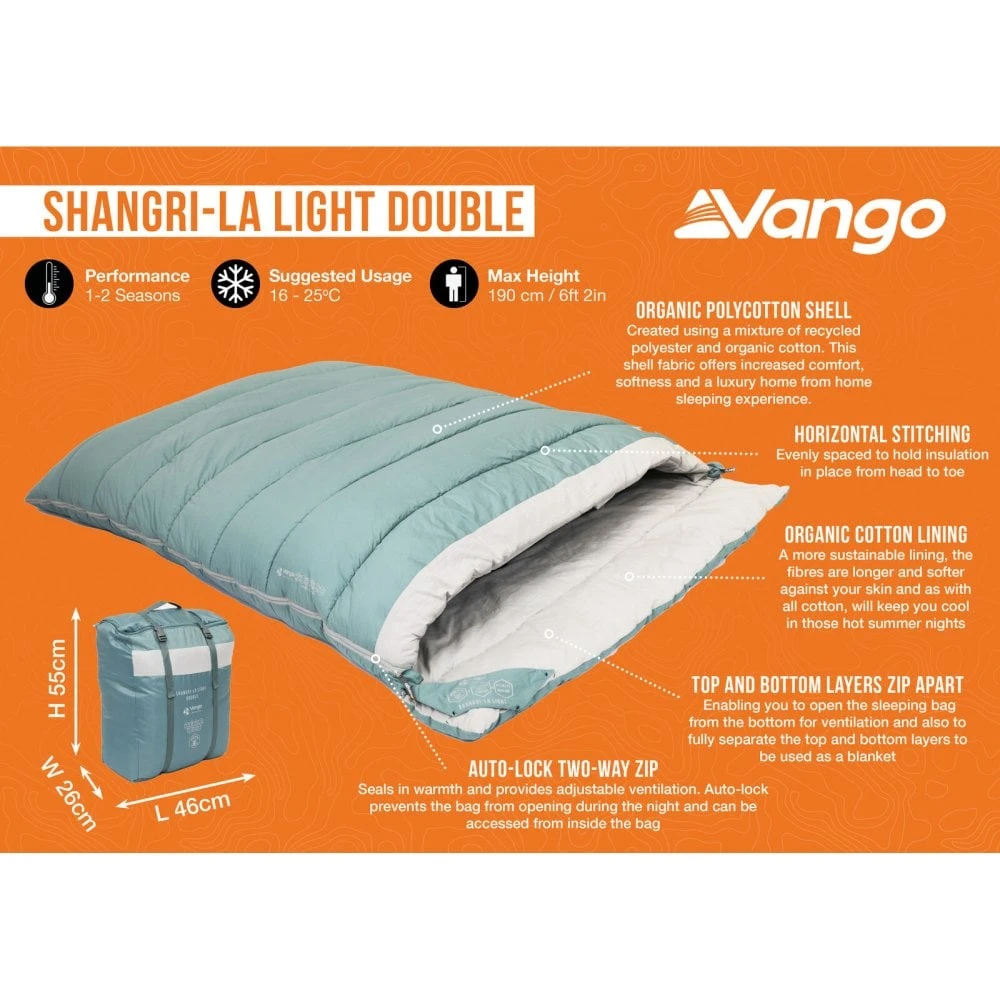 A Luxury Double Sleeping bag, The Vango Shangri-La Light has been made